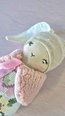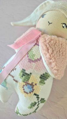 My Mini Bunny Dolls are a sweet, smaller take on my much-loved bunny designs — measuring approximately 18cm tall (without ears) and full of gentle character. Each one is lovingly handcrafted from a thoughtful blend of new and vintage fabrics, chosen for their softness, texture, and timeless charm.